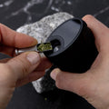 Schaufelseite: Die präzise geformte Dosiermulde nimmt genau die richtige Menge Kräuter auf und führt sie sauber in die Kammer deines Vaporizers – ohne Krümel, ohne Verschwendung. Tamperseite: Die flache Stampffläche auf der gegenüberliegenden Seite verdichtet dein Material gleichmäßig in der Kammer. Das Ergebnis: optimale Luftzirkulation, gleichmäßige Erhitzung und maximale Dampfausbeute.